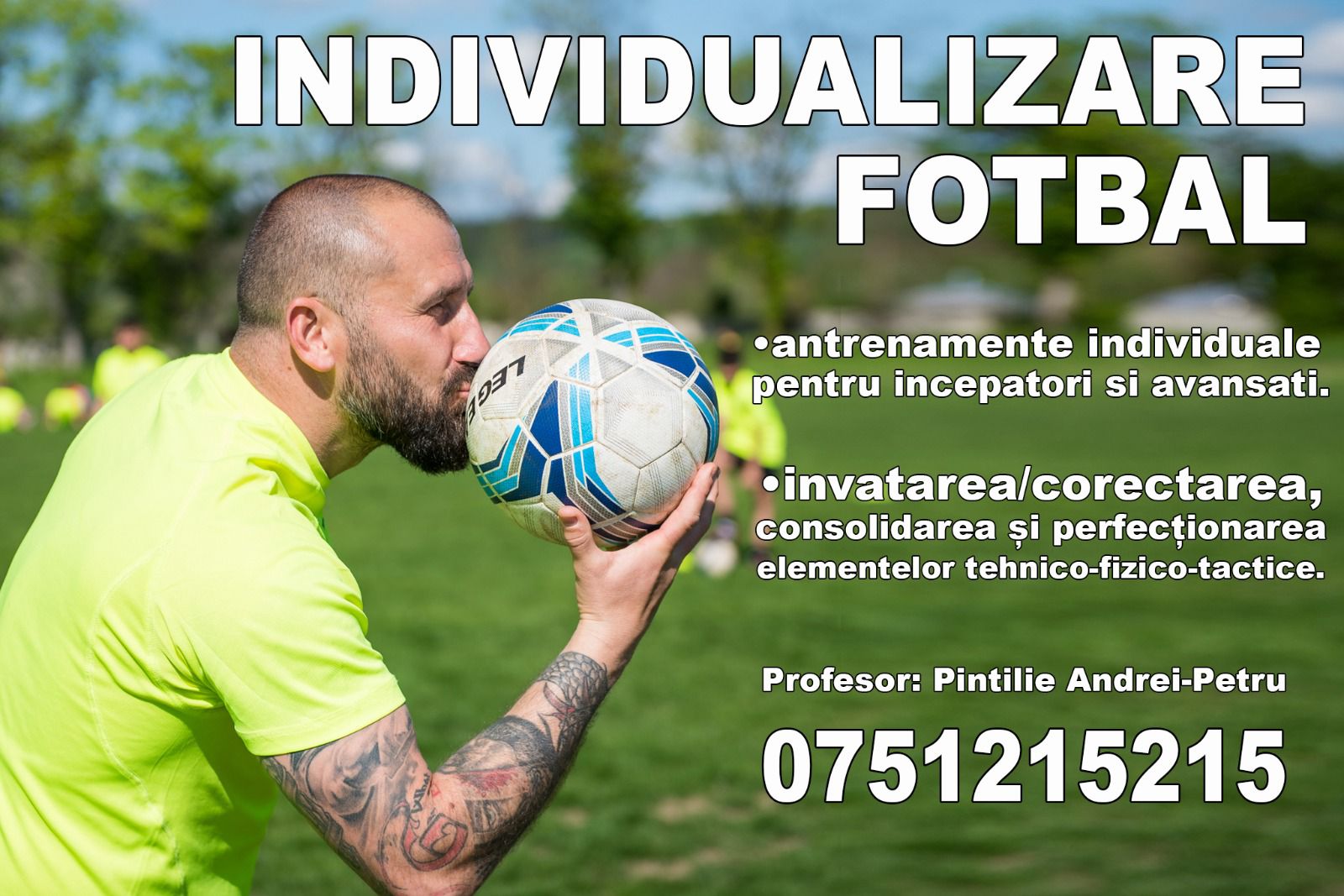 Toti parintii isi doresc ca micii lor fotbalisti sa fie cat mai buni si sa progreseze cat mai mult. Atunci cand parintele isi doreste ca cel mic sa fie mai bun la matematica, ii pune un meditator pentru matematica. Aceeasi gandire a aparut si in fotbalul pentru copii, antrenamentul individual avand rolul meditatiilor din sistemul de invatamant. Pentru cei mai multi, antrenamentele individuale inseamna antrenamente de fotbal desfasurate individual (jucator + antrenor) cu scopul accelerarii dezvoltarii fotbalistice.