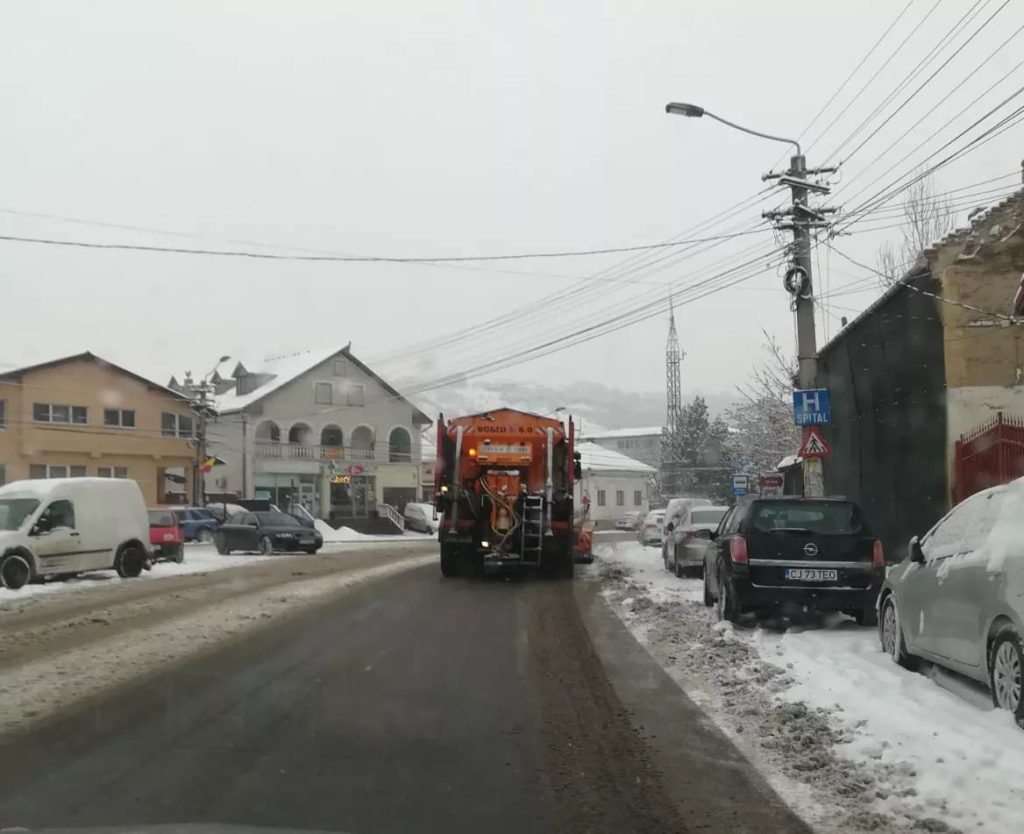 Domeniul Public Turda acționează cu toate utilajele pentru a împrăștia material antiderapant, iar în zonele unde nu au acces se intervine manual.