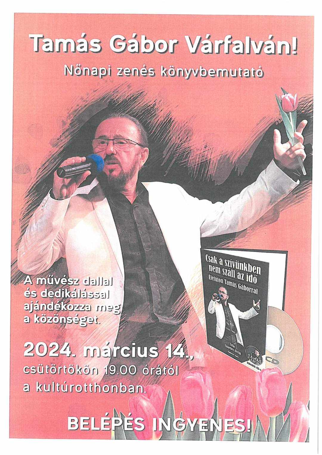 Vă invităm cu drag la prezentarea cărții „Doar în inimile noastre timpul nu trece”, de Tamás Gábor, care va avea loc joi, 14 martie 2024 la Casa de cultură Pataki András din Moldovenești. Prezentarea va începe la ora 19.00.