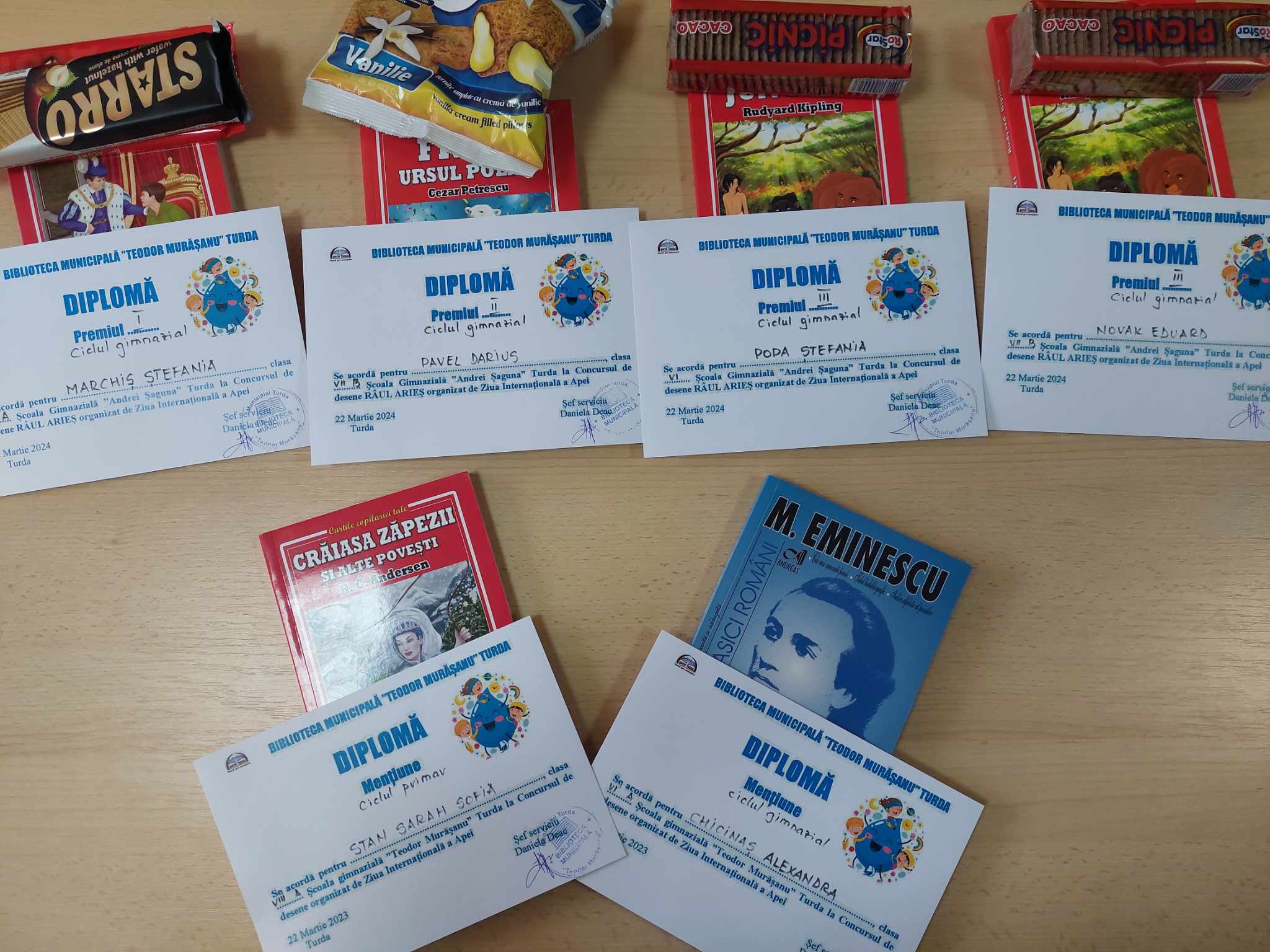 De la începutul lunii Martie a.c. elevii de la Școala Gimnazială ”Andrei Șaguna” Turda au început să pregătească desenele pentru concurs, fiecare elev putând participa în Concurs cu o lucrare. Cele 57 de lucrări participante la concurs au fost jurizate astăzi de o echipă formată din Daniela Deac, șef serviciu al Bibliotecii Municipale ”Teodor Murășanu” Turda, Docze Cristina și Nicoleta Cîrlea, bibliotecare, și s-au acordat 12 premii, după cum urmează: