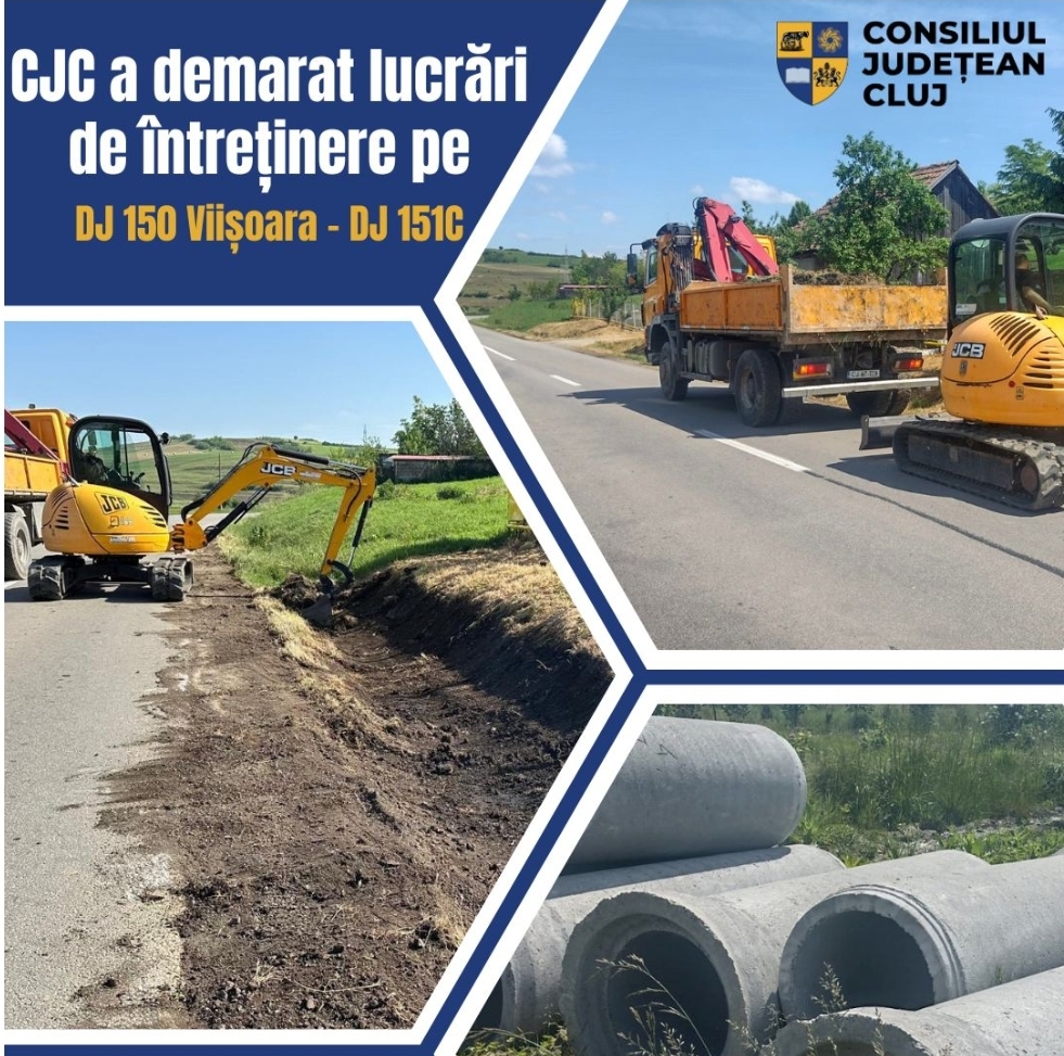 Consiliul Județean Cluj a demarat lucrări de întreținere curentă și periodică pe sectorul de drum Viișoara – joncțiunea cu drumul județean DJ 151C, situat pe drumul județean DJ 150. Acestea au drept principal scop asigurarea unei circulații rutiere normale, în condiții de deplină siguranță.