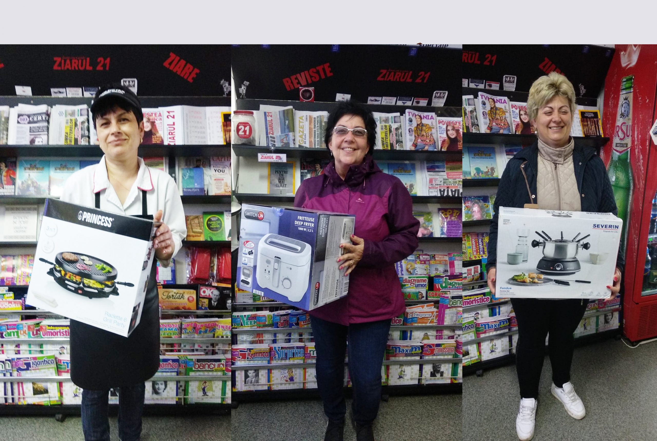 Tabaco Câmpia Turzii și-a premiat câștigătorii lunii aprilie, unde Silvia Bercea, Melinda Szilagyi și Mirela Cucerzan au câștigat o tigaie electrică grill, o friteuză pentru prăjit cartofi pai și un aparat de preparat fondue.