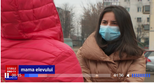 „Domnul profesor şi-a ieşit din fire, l-a tras de pe scaun, l-a tras jos, a căzut băiatul. L-a și înjurat, l-a lovit cu piciorul, l-a lovit după cap și l-a împins și a ajuns în perete. De perete practic l-a trântit. L-a aruncat afară. Nu mi-a venit să cred. Pentru că orice ar face un copil, tu ca cadru didactic nu trebuie să ai comportările acestea față de un copil, nu? E foarte rușinos ce se întâmplă”, a declarat mama elevului pentru Pro TV.