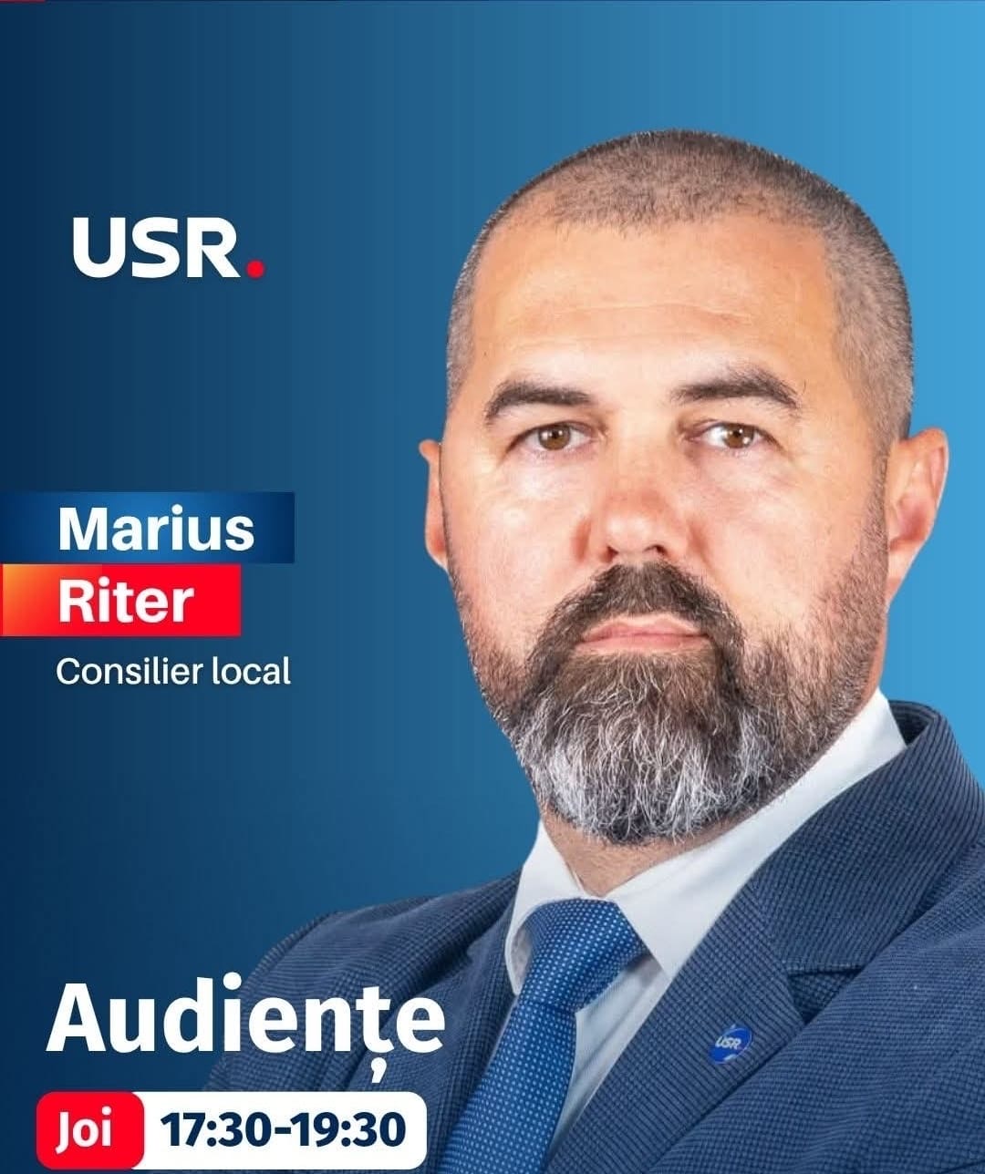 Reprezentantul USR în Consiliul Local Turda, Marius Riter, îi invită pe turdeni la o nouă rundă de discuții și audiențe publice. Întâlnirea va avea loc joi, 13 noiembrie, între orele 17:30 – 19:30, la biroul parlamentar al deputatului Ciprian Rigman, situat în Piața Republicii nr. 34, Turda.
