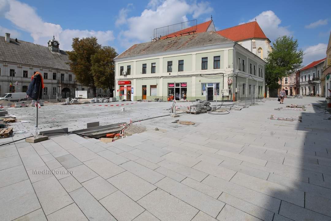 Săptămâna aceasta continuă lucrările de montare a pavajului, totodată a fost realizată structura de beton pe care se va reloca statuia lui Avram Iancu și au fost realizate camerele tehnice de la fântânile interactive.
