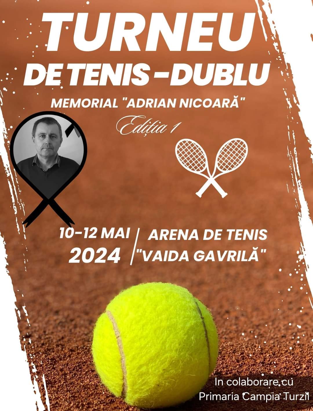 Vă invităm să fiți alături de noi între 10 și 12 mai, la Arena de Tenis „Gavrilă Vaida” din Câmpia Turzii, pentru a omagia amintirea lui Adrian Nicoară, fost angajat al Primăriei Câmpia Turzii și al Centrului de Calcul din ISCT, în cadrul primei ediții a memorialului dedicat lui. Cu emoție, îi vom aduce un omagiu, printr-un turneu de tenis – sportul pe care l-a apreciat atât de mult!