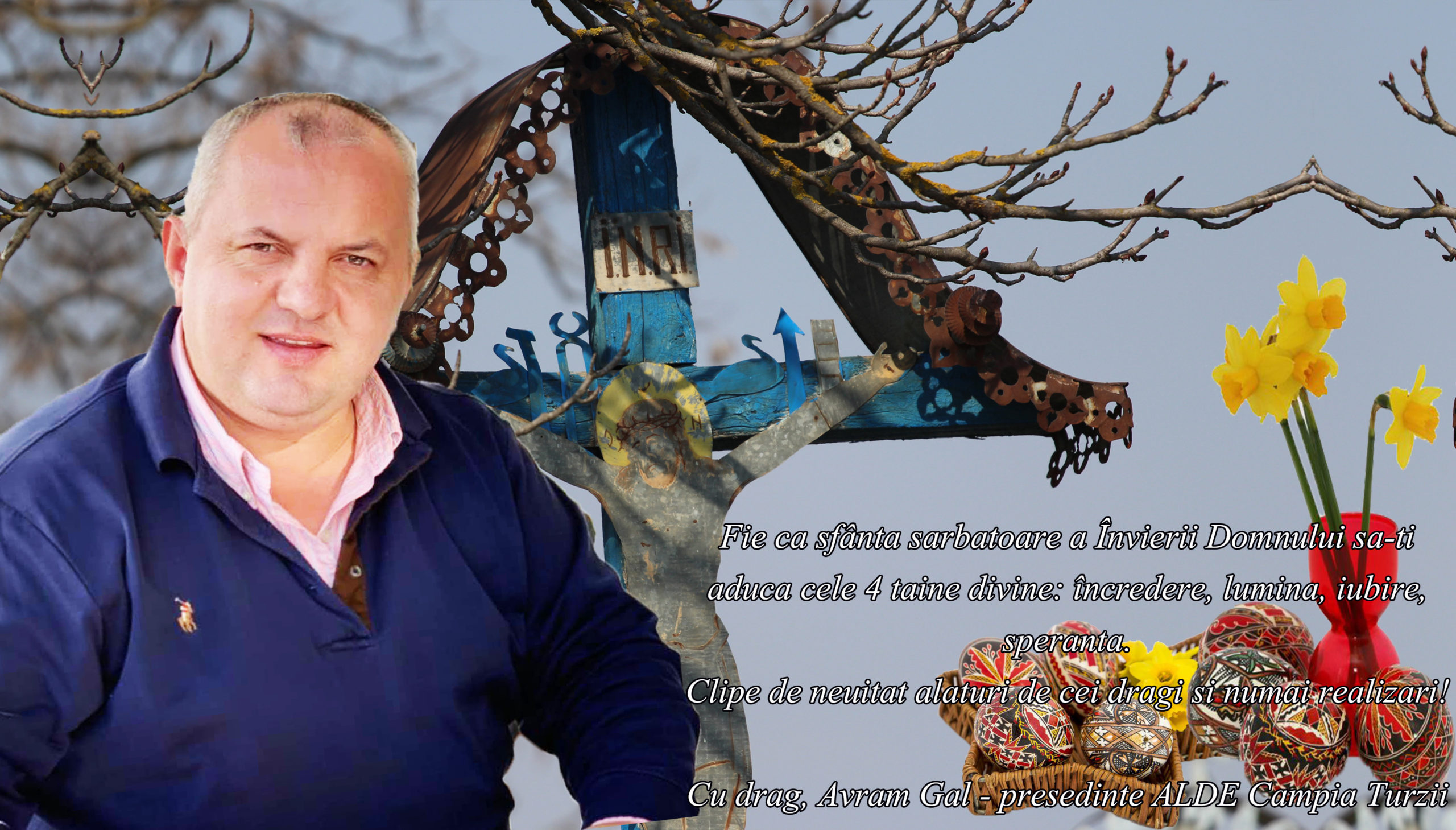Actualitate Mesajul președintelui ALDE Câmpia Turzii, Avram Gal, cu ocazia Sfintelor Paști ziarul21.ro 18 aprilie 2020, 10:43 Share Tweet Share Share Email Comments Fie ca sfânta sarbatoare a Învierii Domnului sa-ti aduca cele 4 taine divine: încredere, lumina, iubire, speranta. Clipe de neuitat alaturi de cei dragi si numai realizari! Cu drag, Avram Gal – presedinte ALDE Campia Turzii Related Items:avram gal, campia turzii, Featured, presedinte alde Share Tweet Share Share Email Recommended for you Festivitatea de premiere a Concursului județean ”TE IUBESC, ROMÂNIA MEA!”- ediția a II-a Informații noi cu privire la procedura de sterilizare și microcipare a câinilor cu stăpâni din rasa comună și metișii acestora ATENȚIE LA ȚURȚURI! Click to comment Leave a Reply Anulează răspunsulComentariile trebuie să respecte regulile de utilizare.Adresa ta de email nu va fi publicată. Câmpurile necesare sunt marcate cu *Comentariu * Nume * Email * Δ Acest site folosește Akismet pentru a reduce spamul. Află cum sunt procesate datele comentariilor tale.