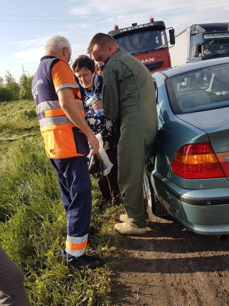 Sergentul Peștean Dorin, asistent medical de urgență în Baza 71 Aeriană din Câmpia Turzii, a oprit și a acordat primul ajutor victimelor din cele doua autoturisme până la sosirea echipajelor medicale.