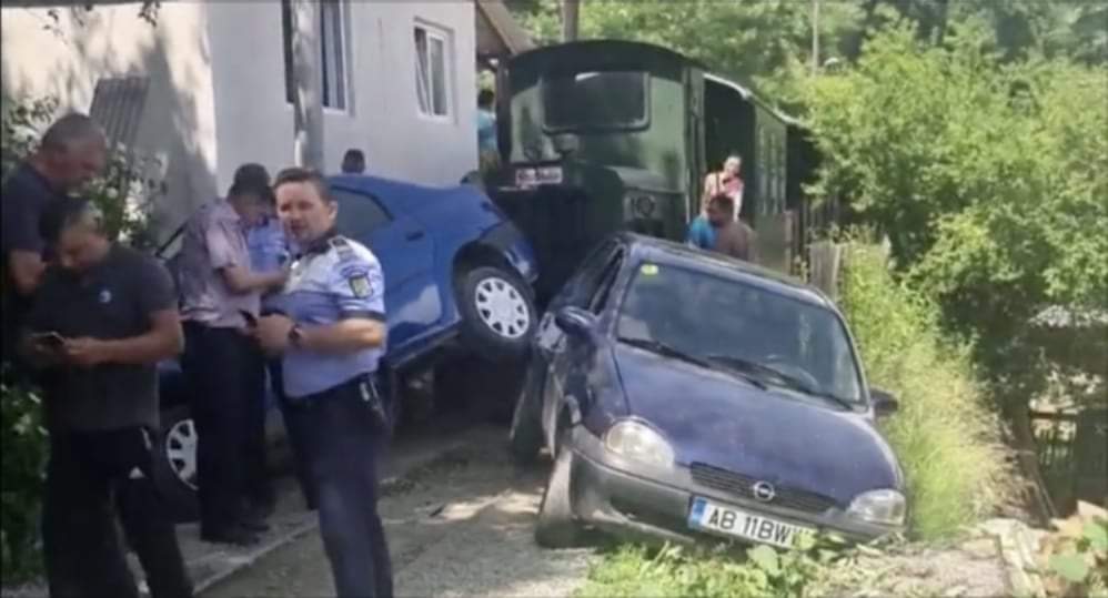 Mocănița a lovit două autoturisme și le-a luat târâș câțiva metri. Polițiștii au deschis în acest sens o anchetă pentru a afla cum s-a produs accidentul și cine se face vinovat.