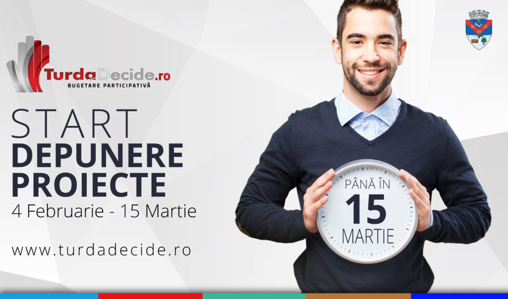 Începând de azi 4 februarie 2019, se dă startul pentru depunerea de proiecte prin intermediul platformei www.turdadecide.ro, acestea pot fi depuse până în data de 15 martie 2019.