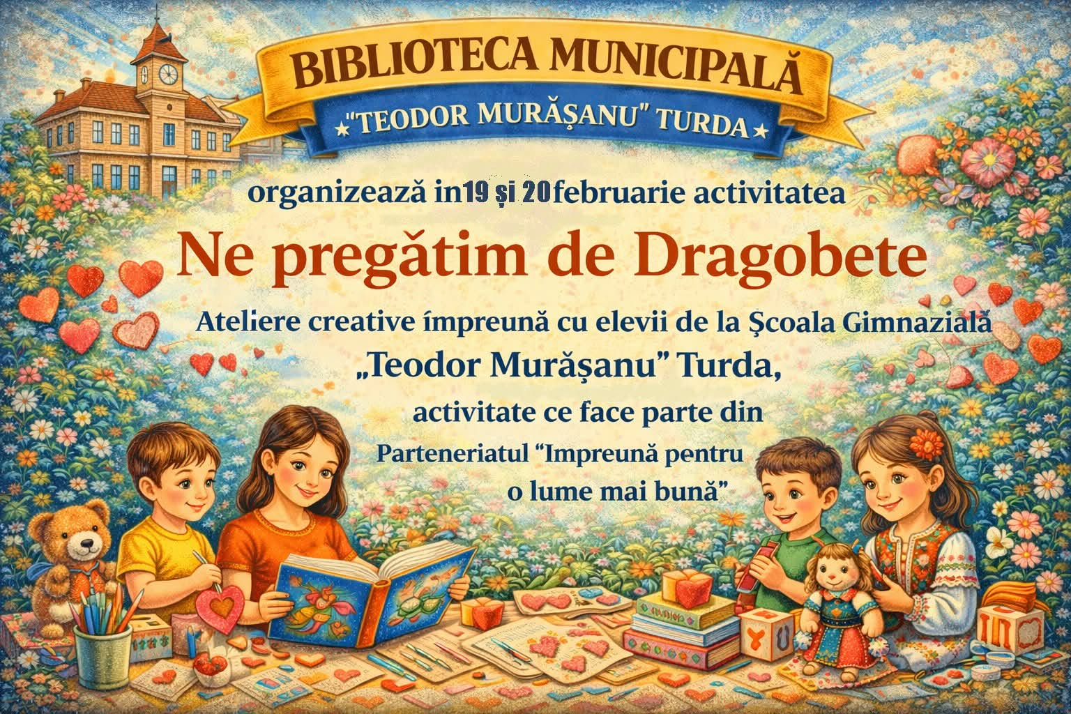 Biblioteca Municipală “Teodor Murăşanu” Turda în colaborare Școala Gimnazială ”Teodor Murășanu” Turda organizează în 19 și 20 februarie a.c., atelierele creativ-educative ”Ne pregătim de Dragobete” în cadrul Parteneriatului „Împreună pentru o lume mai bună” pe care școala și biblioteca publică l-au încheiat în acest an școlar.
