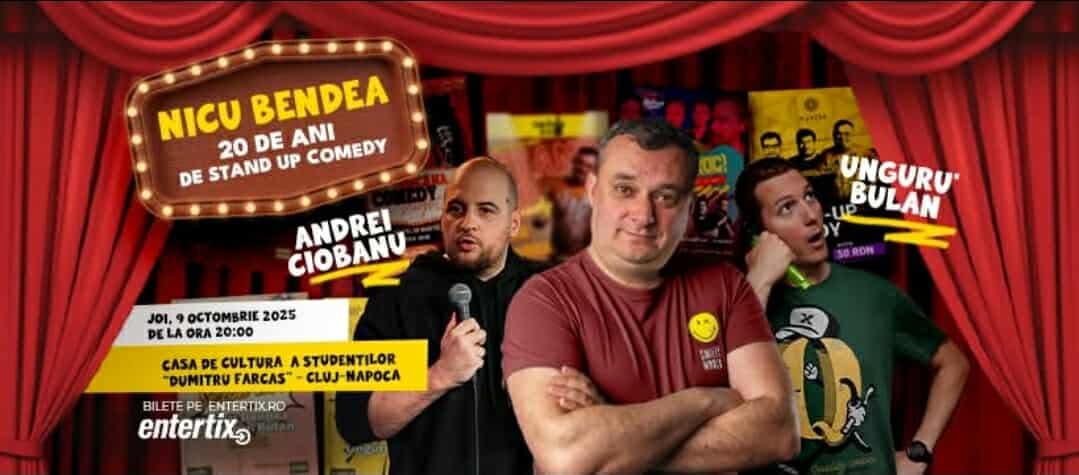 Clujul devine capitala umorului pe 9 octombrie 2025, când Nicu Bendea, unul dintre cei mai apreciați comedianți ai României, marchează 20 de ani de activitate artistică printr-un spectacol aniversar de neuitat. Evenimentul va avea loc la Casa de Cultură a Studenților din Cluj-Napoca, un spațiu cu tradiție pentru marile spectacole de comedie.