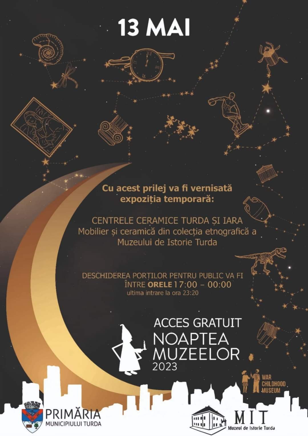 Muzeul de Istorie Turda vă invită să luați parte la o călătorie în timp și spațiu, sâmbătă, 13 mai 2023, între orele 17:00 -00:00 la Muzeul de Istorie Turda, pentru a sărbători împreună cea de-a 19-a ediție a evenimentului Noaptea Europeană a Muzeelor.