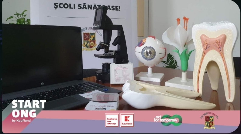 Școala Gimnazială Teodor Murășanu este încântată să anunțe că a reușit să obțină noi echipamente și instrumente de biologie prin intermediul proiectului „Școli Sănătoase’’, finanțat prin programul Start ONG, lansat de Kaufland România și implementat de Asociația Act for Tomorrow. Această inițiativă importantă aduce o contribuție semnificativă la îmbunătățirea condițiilor de învățare și a experienței educaționale a elevilor noștri care se bucură de o sală dotată cu: microscop profesional, laptop, instrumentar pentru laboratorul de biologie, mulaje și o trusă de prim ajutor.