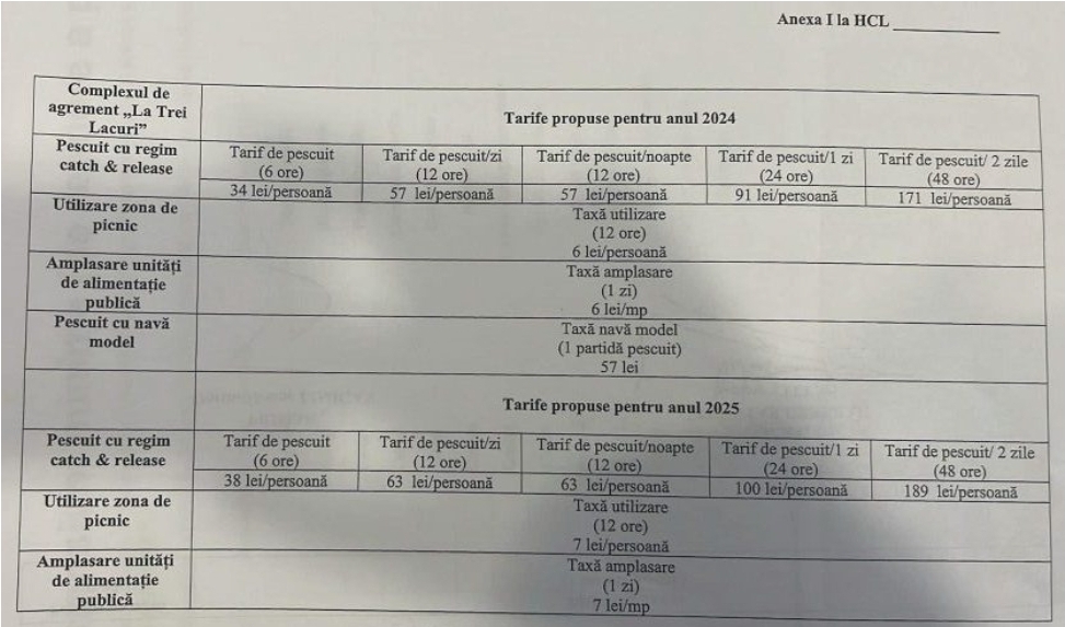 ”Vă aducem la cunoștință noile tarife care se vor practica la Trei Lacuri.