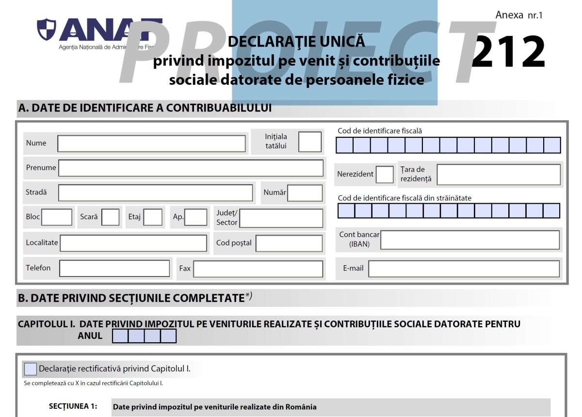 Noua formă a declarației 212 va fi folosită de către persoanele fizice pentru definitivarea taxelor pe veniturile din 2023, dar și pentru estimarea taxelor pe veniturile din 2024. Potrivit ANAF, modificările față de actualul formular sunt, în principal, următoarele: