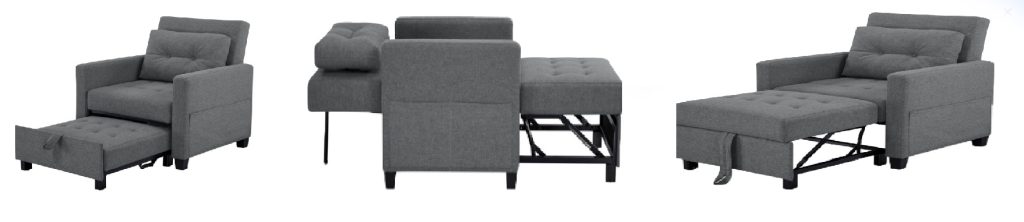Acest tip de fotoliu îmbină perfect confortul cu funcționalitatea, transformându-se rapid dintr-un fotoliu elegant într-un pat comod. Este alegerea ideală pentru spațiile mici, garsoniere sau pentru momentele în care ai oaspeți neașteptați.