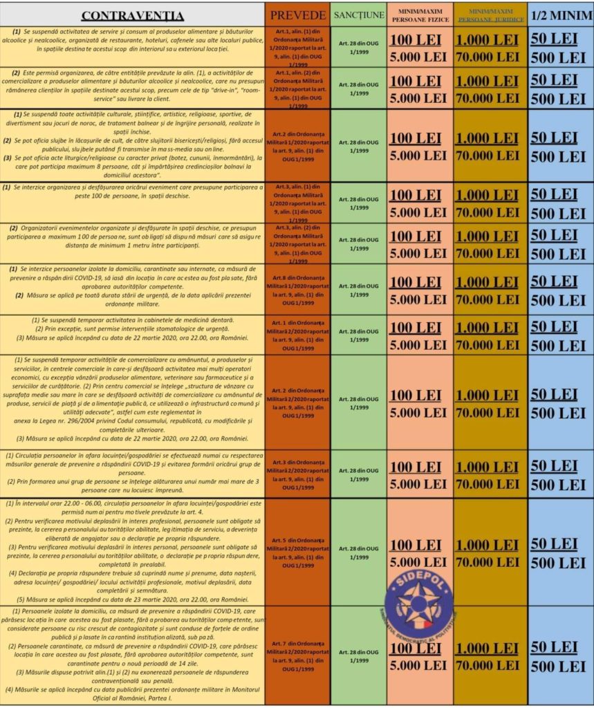 Autorităţile statutului au emis, duminică seara, lista de amenzi pentru persoanele fizice şi juridice care încalcă noile restricţii prin care se restrâng și drepturile de circulaţie. Amenzile se ridică la sume cuprinse între 100 şi 5000 de lei, dacă ieşi pe stradă fără să ai unul dintre motivele cuprinse în hotărâre.