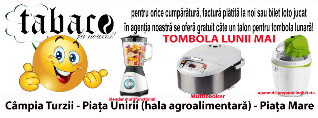 Șanse duble de câștig la Tabaco, unde pentru fiecare bilet loto, ori pentru fiecare loz în plic cumpărat din agenția noastră se oferă gratuit câte un talon pentru tombola lunară.