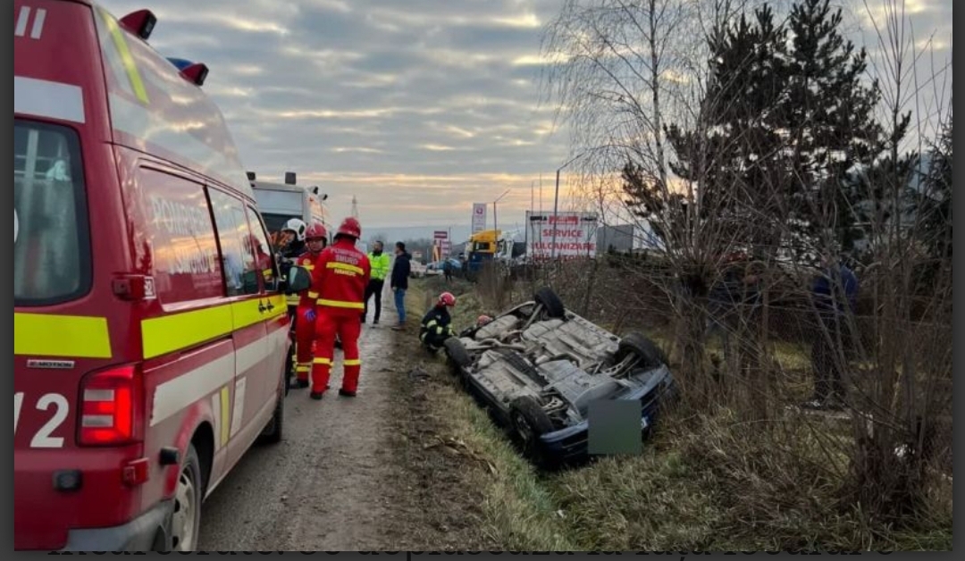 Pompierii au găsit la fața locului un autoturism avariat. O femeie și trei minori au ieșit singuri afară și nu sunt răniți.