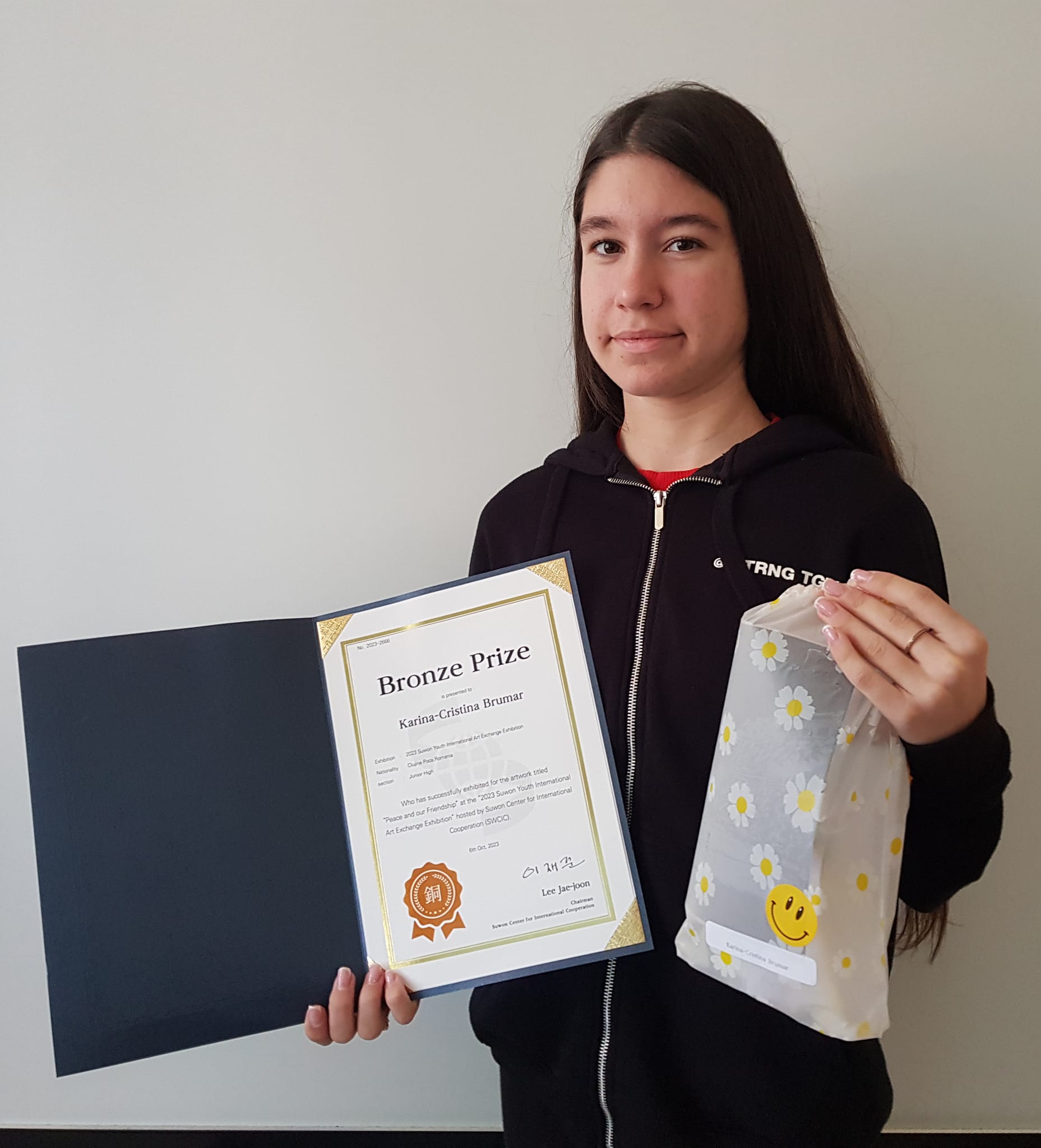 KARINA-CRISTINA BRUMAR, elevă a Școlii Gimnaziale „Teodor Murășanu” Turda, clasa a VII-a C, impresionează prin talentul ei în domeniul artelor vizuale