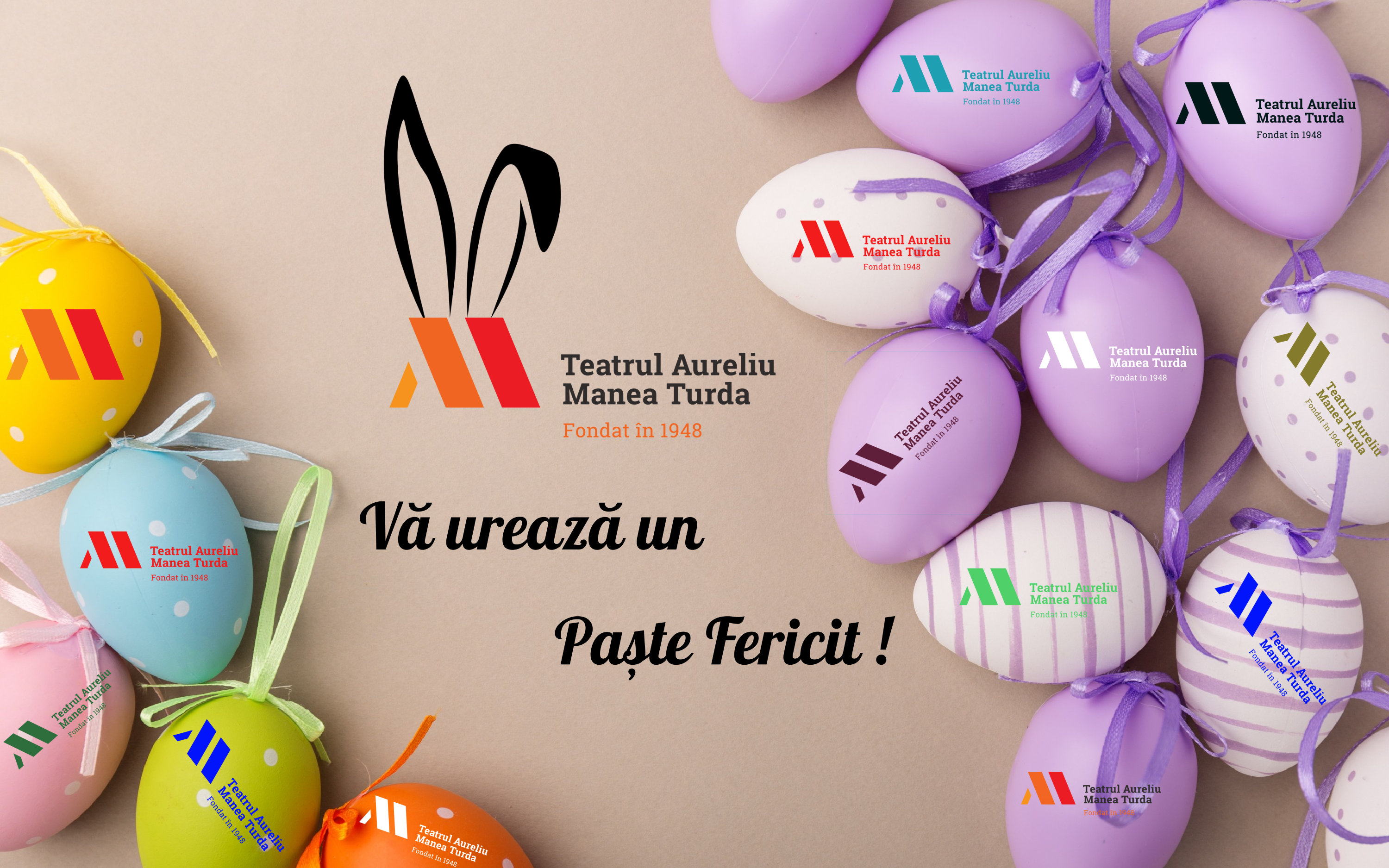 Pentru că ne aflăm în preajma sfintelor sărbători pascale, echipa Teatrului Aureliu Manea urează tuturor colaboratorilor și publicului spectator, Sărbători liniștite și Paște Fericit !