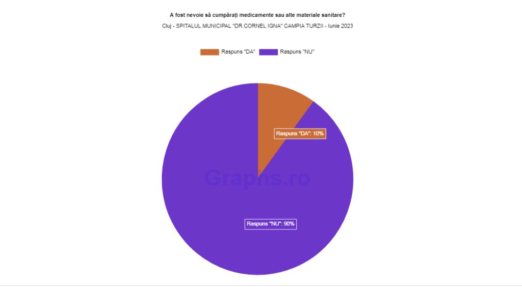 Dintre pacienții care au răspuns chestionarului în Iunie 2023, 10% au declarat că au fost nevoiți să-și cumpere singuri medicamente sau alte materiale sanitare din spital. Aceasta reprezinta o scădere, -4.29% față de luna precedentă (Mai 2023), când procentul era de 14.29%.