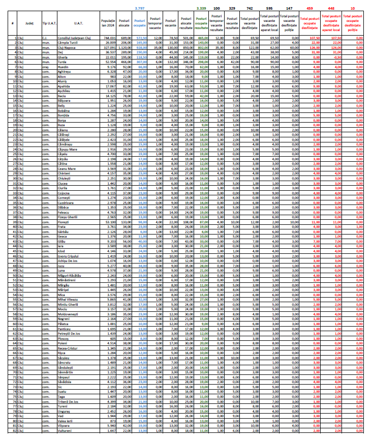 În funcție de opțiunea aleasă, impactul asupra angajaților din administrația publică poate fi diferit, însă în scenariul cel mai drastic s-ar putea ajunge la până la 1.700 de posturi eliminate la nivelul județului Cluj.
