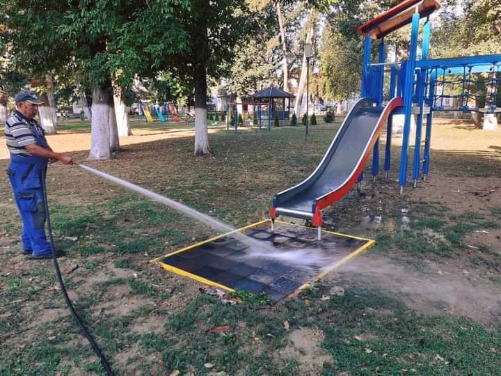 Primăria Municipiului Turda a intensificat acțiunile de dezinfecție și salubrizare a parcurilor, care sunt tot mai frecventate de copii, părinți și bunici.