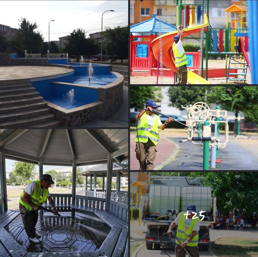 Parcul Teilor a trecut printr-o amplă acțiune de salubrizare, care a inclus curățarea aparatelor de joacă, a băncilor și a locurilor de relaxare cu ajutorul cisternei cu presiune. De asemenea, fântâna arteziană a fost igienizată și vopsită.