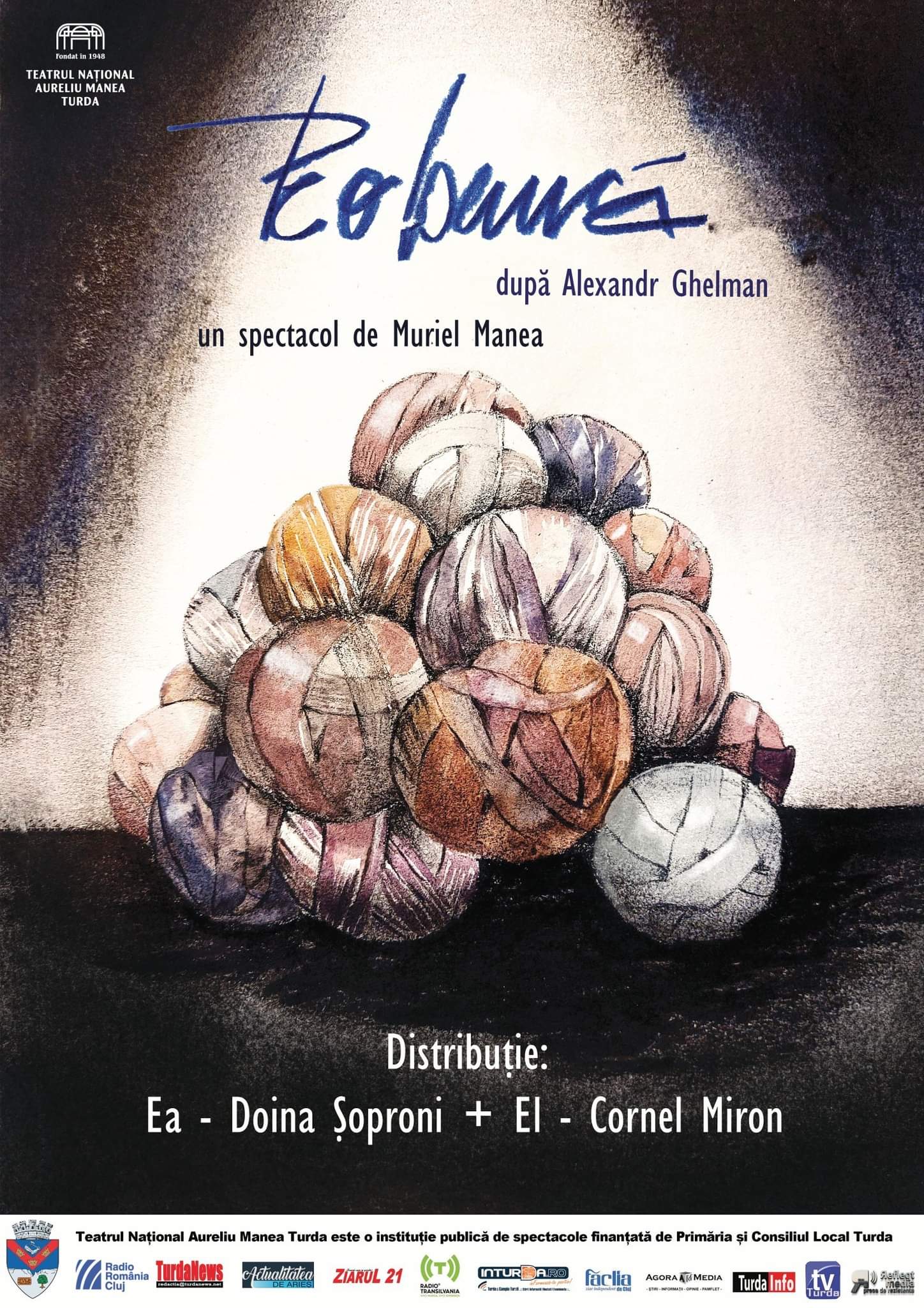 Teatrul Național Turda vă invită vineri 18 noiembrie și sâmbătă 19 noiembrie de la ora 19.00, la spectacolul Pe o bancă,după Alexandr Ghelman,un spectacol deMuriel Manea. Din distribuția spectacolului fac parte actorii: Doina Șoproni și Cornel Miron.