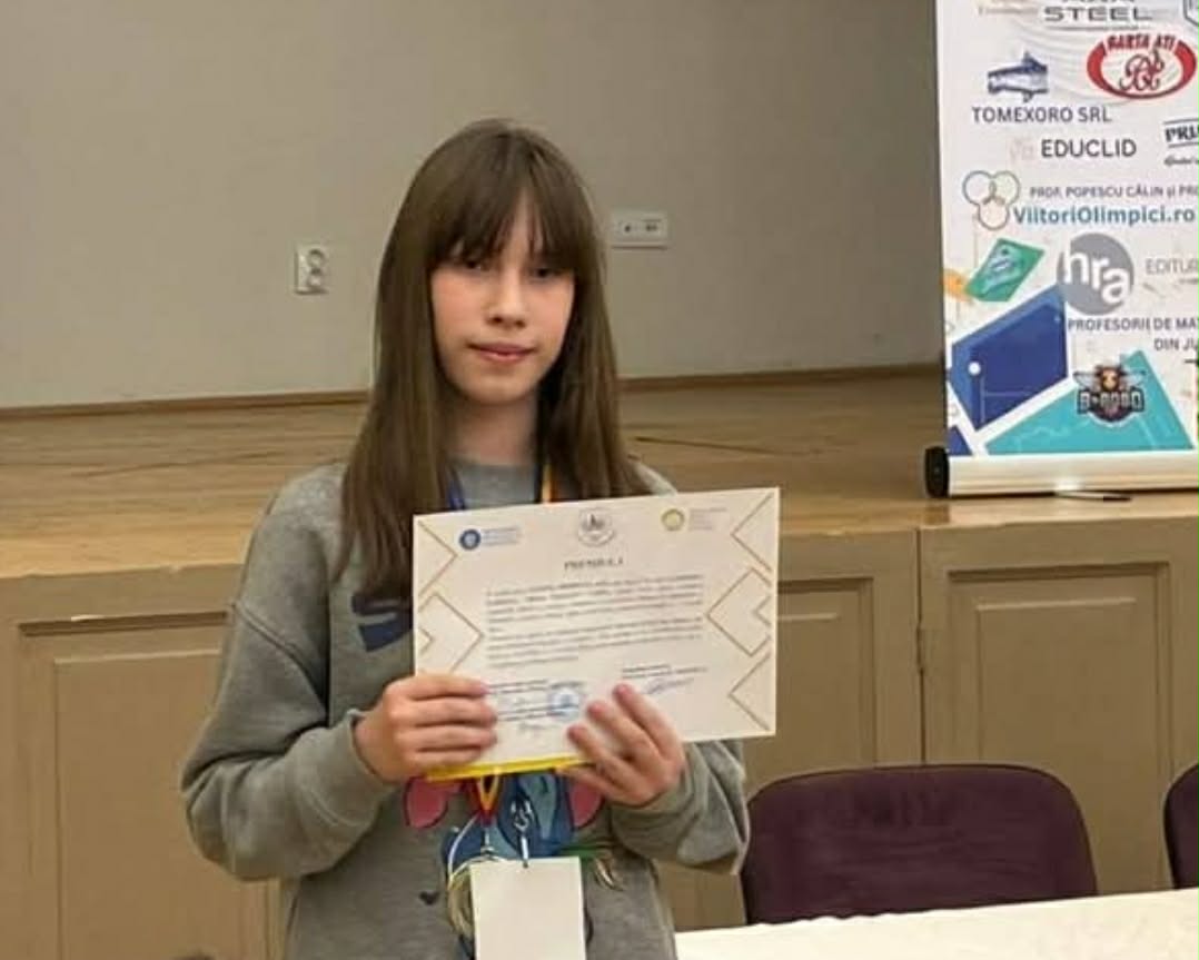 Eleva Rebecca Vancea, din clasa a VI-a, a obținut Locul I și Medalia de Aur, impresionând prin performanța sa deosebită.