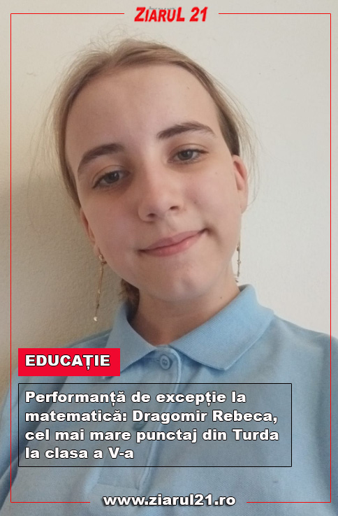 Rezultat remarcabil pentru o elevă din Turda: Dragomir Rebeca, elevă în clasa a V-a A, a obținut cel mai mare punctaj la nivelul municipiului la etapa locală a Olimpiada Națională de Matematică, calificându-se astfel la etapa județeană a competiției.