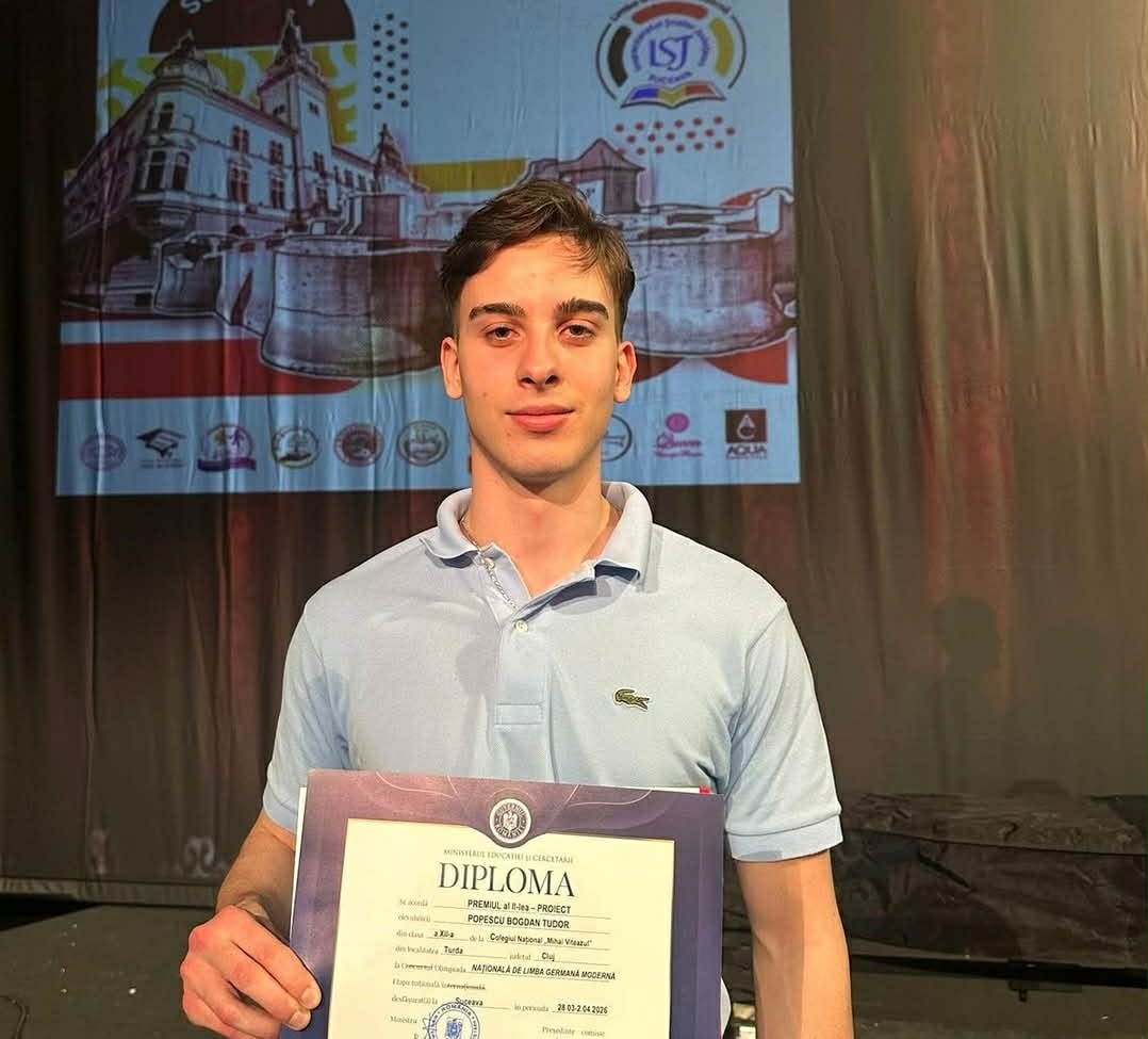 Este vorba despre Popescu Bogdan Tudor, care a reușit să obțină Premiul al II-lea, la categoria proiect, în cadrul etapei naționale a Olimpiadei de Limbă Germană Modernă. Competiția s-a desfășurat la Suceava, în perioada 28 martie – 2 aprilie 2026.