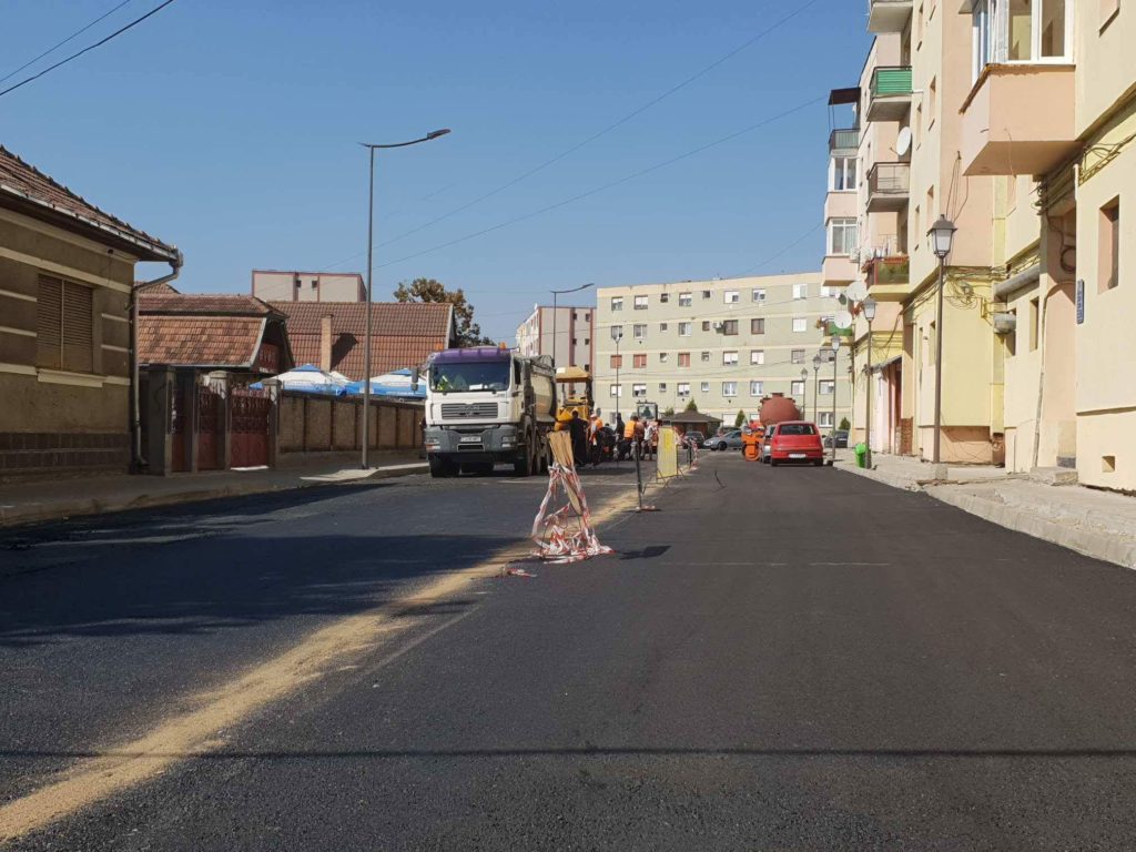 Lucrările începute în luna mai, s-au finalizat joi, când s-a turnat covorul asfaltic ( stratul de uzură) pe întreaga suprafață.