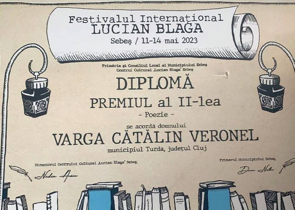 Desfășurată de joi, 11, până duminică, 14 mai, la Sebeș, Lancrăm și Alba Iulia, cea de-a 43-a ediție a Concursului național de creație literară și artă plastică ”Lucian Blaga” s-a constituit în încă o treaptă urcată de poetul Cătălin Varga, preot, doctor și doctorand, care slujește la Biserica Ortodoxă Română de pe strada Ioan Opriș, din cartierul turdean Oprișani, pe scara afirmării sale literare. Colaborator al revistei ”Ecouri” publicația culturală a Turzii, poetul Cătălin Varga a obținut premiul al II-lea la concursul de creație literară ”Lucian Blaga”. Cătălin Varga a primit premiul din mâna scriitorului clujean Horia Bădescu.