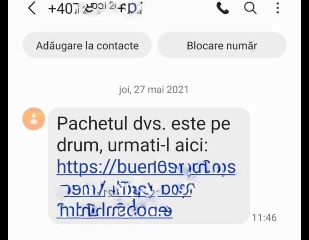 Poliția Română avertizează: „Nu accesațMai multe persoane au primit mesaje SMS, de pe diverse numere de telefon (naționale sau internaționale), cu textul „Pachetul dvs. este în drum, urmăriți-l aici”, urmat de un link.