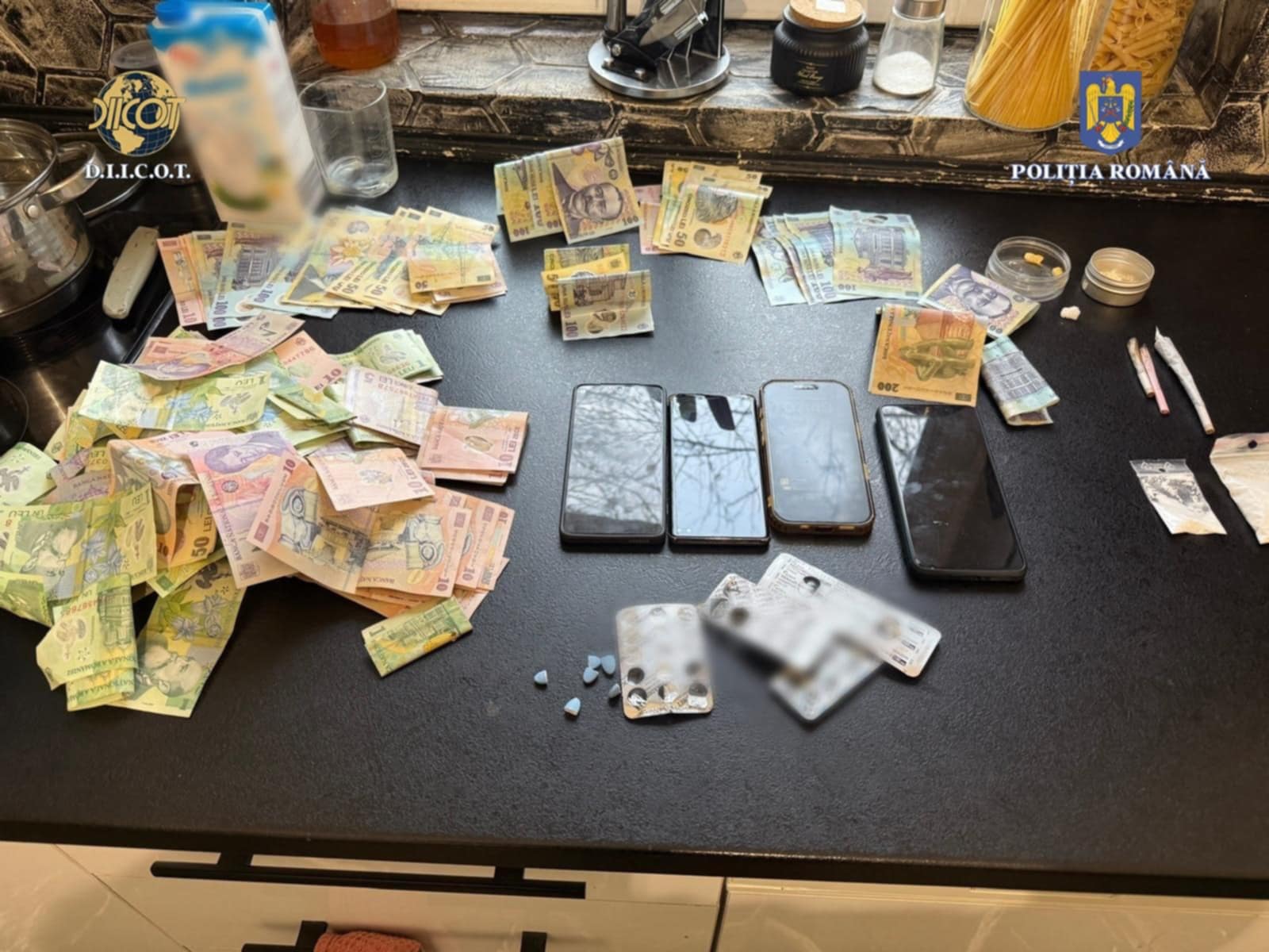 În urma celor 3 percheziții efectuate la data de 28 februarie 2025, în județul Cluj, au fost descoperite și ridicate cantități de substanță psihoactivă 2 MMC, obiecte purtând urme de substanță, plicuri autosigilante, precum și alte mijloace de probă.