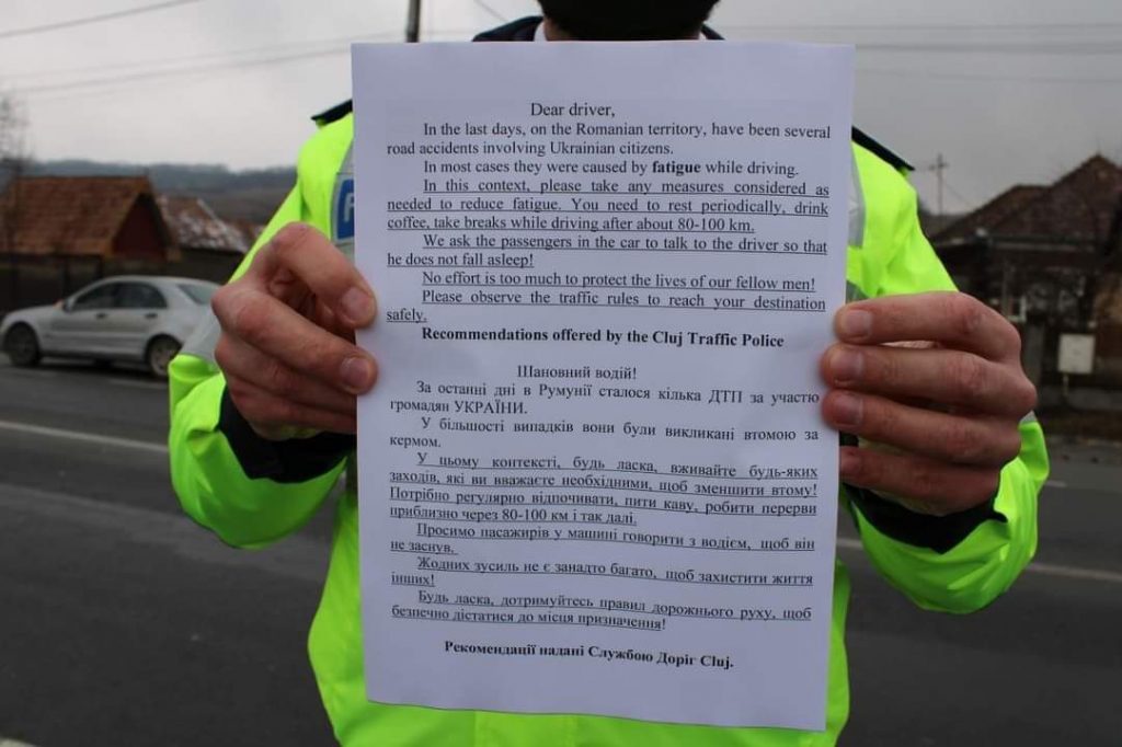Pentru prevenirea producerii unor evenimente rutiere sau a unor accidente grave de circulație, polițiștii au fost prezenți astăzi pe principalele artere din județul Cluj, unde au desfășurat activități informativ-umanitare adresate cetățenilor ucraineni.