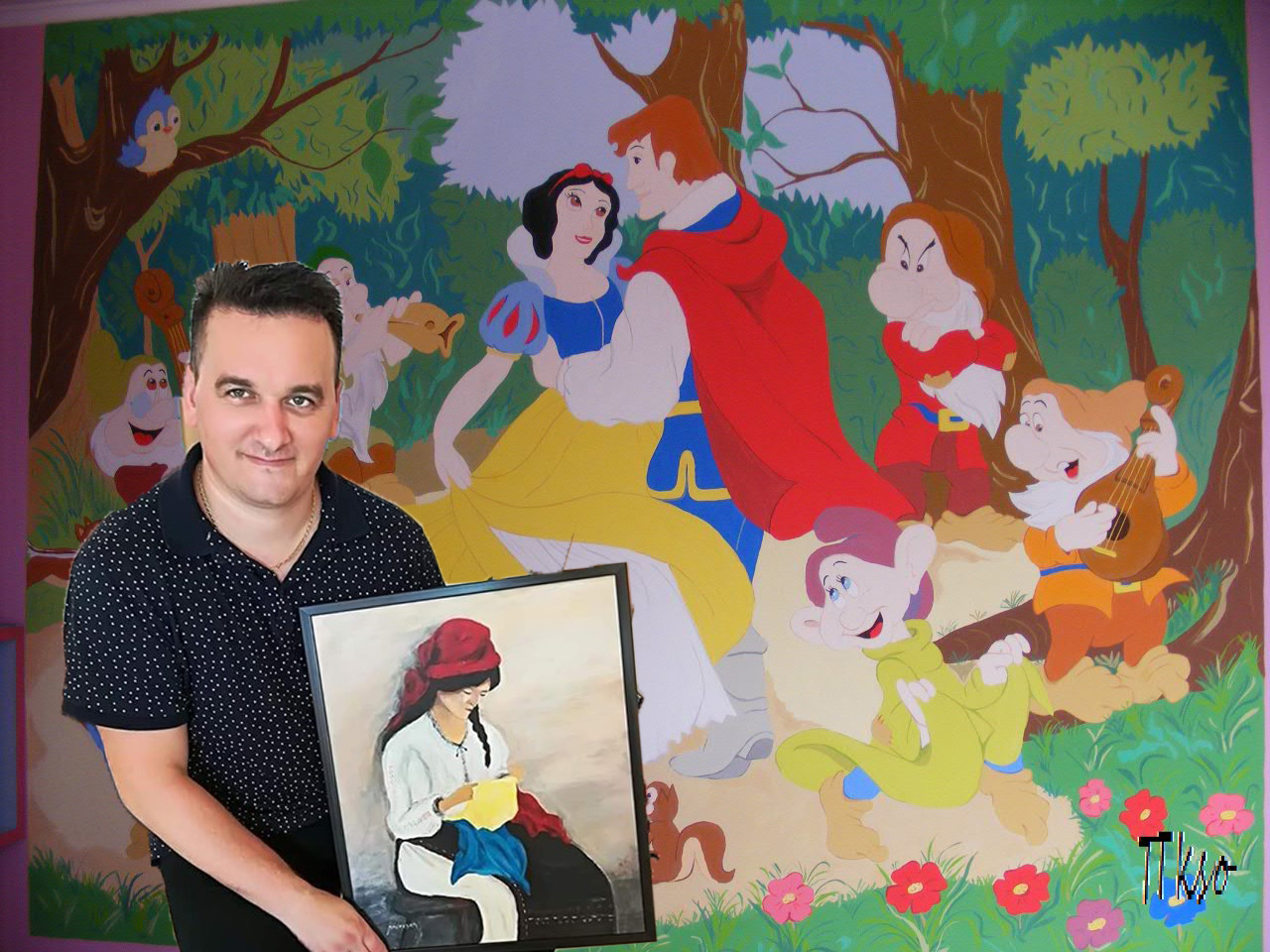 L-am întâlnit pe Mureşan Adrian, căci despre el este vorba, după orele de serviciu acasă la nişte prieteni ,când transforma camera fetiţei prietenilor mei, într-un tărâm de basm. Văzând ce a ieşit din mâinile acestui om, dar şi bucuria fetiţei prietenilor mei, văzându-şi camera transformată în tărâmul de basm mult visat,nu am putut rămâne indiferent, iar după multe insistenţe , Adrian, modest din fire, a acceptat să stea de vorbă cu mine pentru cititorii Ziarului 21. Văzându-l puţin timorat, nefiind obişnuit cu centrul atenţiei , acesta ne-a povestit totuşi, despre talentul şi hobby-ul său, care putem spune că s-a transformat într-o mică afacere, asta pentru că tot mai mulţi părinţi doresc să le îndeplinească dorinţele copiilor lor pictându-le camera cu personajele din poveştile preferate.