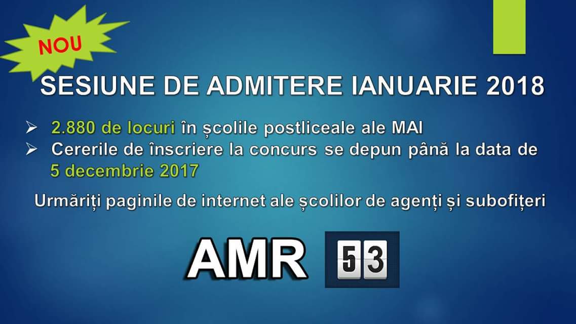 Școlile postliceale ale MAI organizează concursurile de admitere în perioada 13 – 21 ianuarie 2018, conform graficelor stabilite la nivelul fiecărei școli.