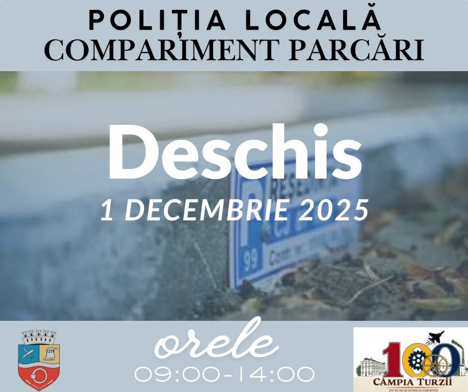 Pe 1 Decembrie 2025, Compartimentul Parcări al Poliției Locale va fi DESCHIS!