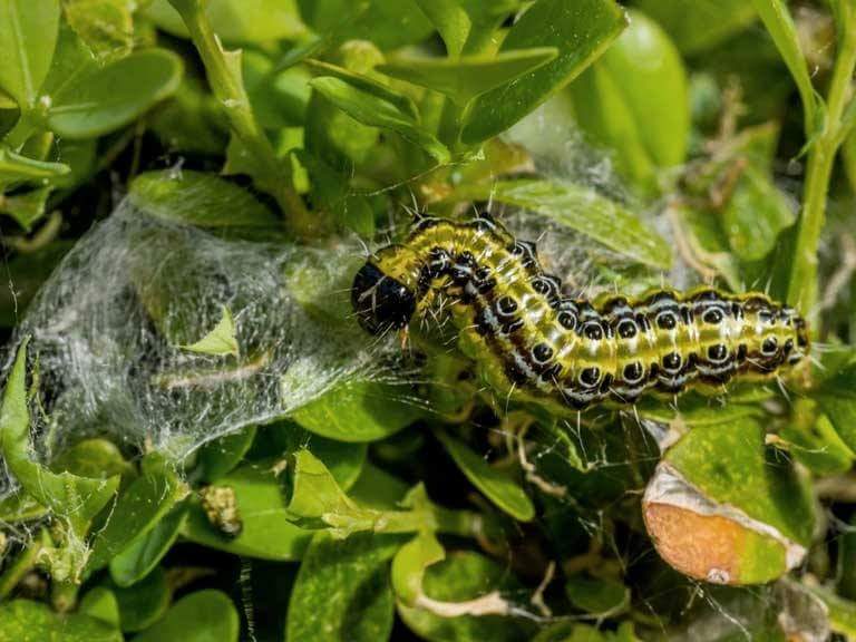 Cydalima perpectalis este un lepidopter aparținând familiei Crambidae. Are 2-3 germinații/an. Adultul este un fluture care zboară și asta îl ajută mult la răspândirea insectei dintr-o locație în alta. Larvele produc pagube mari prin consumarea frunzelor ceea ce a dus la defolierea în masă iar în unele cazuri la uscarea tufelor de arbust în întregime. Larvele au culoarea galben-verzui cu puncte, negi negri cu smocuri de peri lungi de aproximativ 4 cm lungime.