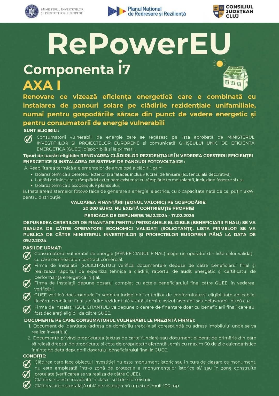 Vești bune pentru consumatorii vulnerabili de energie din comuna noastră! Prin programele #RePowerEU, aveți oportunitatea de a beneficia de finanțări nerambursabile pentru: