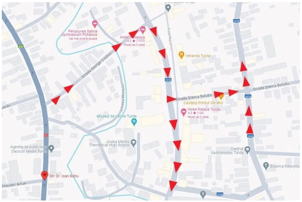 Totodată, Primăria Turda informează că sensul de mers pe strada Șterca Șuluțiu este dinspre strada Piața Republicii înspre strada Axente Sever.