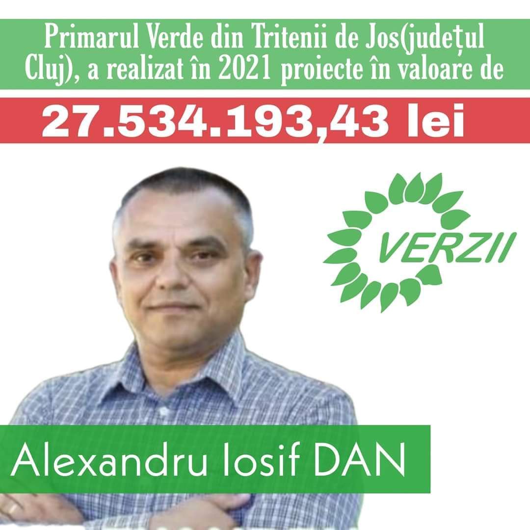 În ultimul an Dan Alexandru Iosif, primarul comunei Tritenii de Jos, a reușit să depună cereri de finanțare pentru proiecte de investiții în valoare de 27.534.193,43 lei.