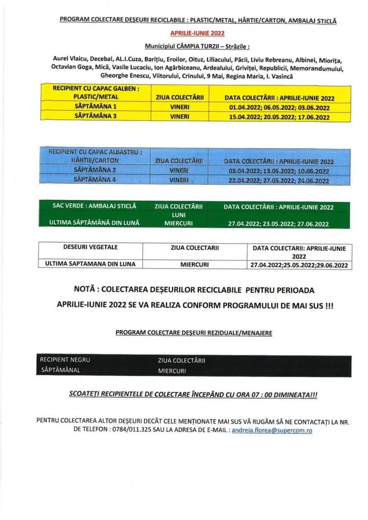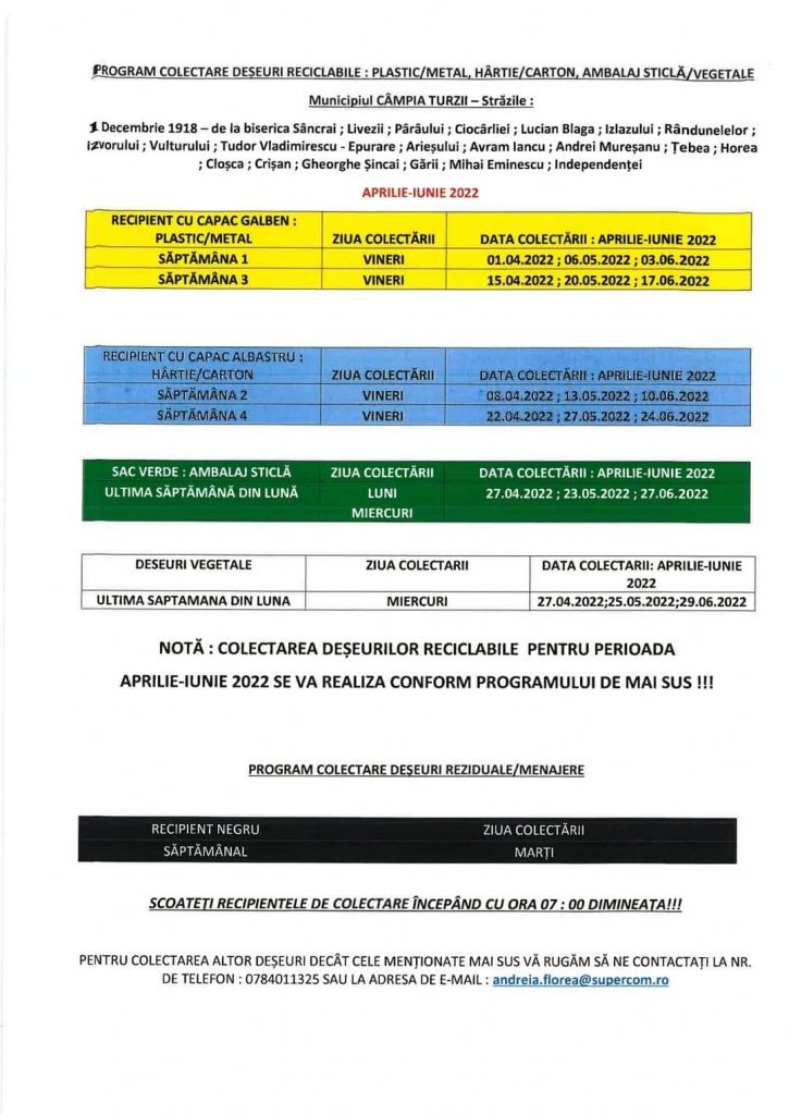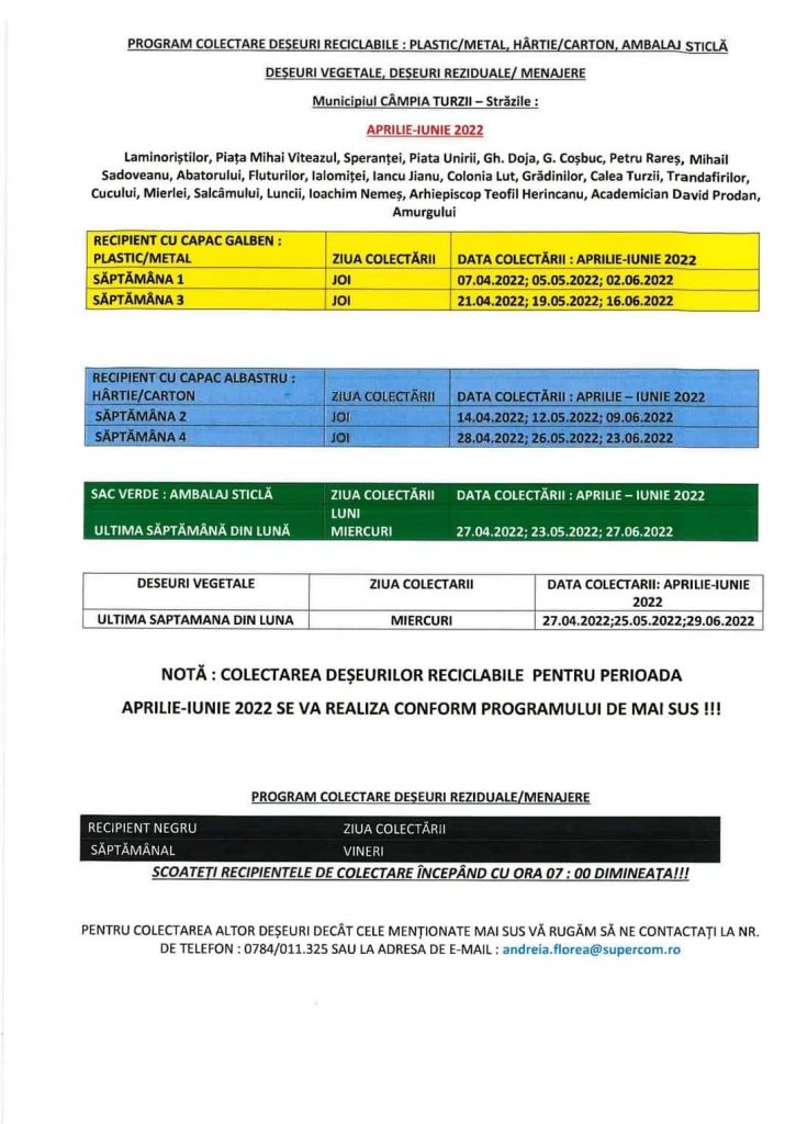 Actualitate Programul de colectare a deșeurilor, în Municipiul Câmpia Turzii, în perioada aprilie – iunie 2022 ziarul21.ro 5 aprilie 2022, 11:11 Share Tweet Share Share Email Comments Related Items:Featured, în municipiul Câmpia Turzii, în perioada aprilie - iunie 2022, Programul de colectare a deșeurilor, ziarul 21 Share Tweet Share Share Email Recommended for you 𝐀𝐜𝐭̦𝐢𝐮𝐧𝐢 𝐝𝐞 𝐝𝐞𝐬𝐳𝐚̆𝐩𝐞𝐳𝐢𝐫𝐞 𝐬̦𝐢 𝐜𝐨𝐦𝐛𝐚𝐭𝐞𝐫𝐞 𝐚 𝐩𝐨𝐥𝐞𝐢𝐮𝐥𝐮𝐢 𝐩𝐞 𝐝𝐫𝐮𝐦𝐮𝐫𝐢𝐥𝐞 𝐣𝐮𝐝𝐞𝐭̦𝐞𝐧𝐞 Activități de prevenire a bullyingului la Școala Gimnazială Ploscoș, în cadrul proiectului PNRAS CAMPIOANELE DE LA TURDA! Performanță națională de excepție pentru clubul nostru de șah Click to comment Leave a Reply Anulează răspunsulComentariile trebuie să respecte regulile de utilizare.Adresa ta de email nu va fi publicată. Câmpurile necesare sunt marcate cu *Comentariu * Nume * Email * Δ Acest site folosește Akismet pentru a reduce spamul. Află cum sunt procesate datele comentariilor tale.
