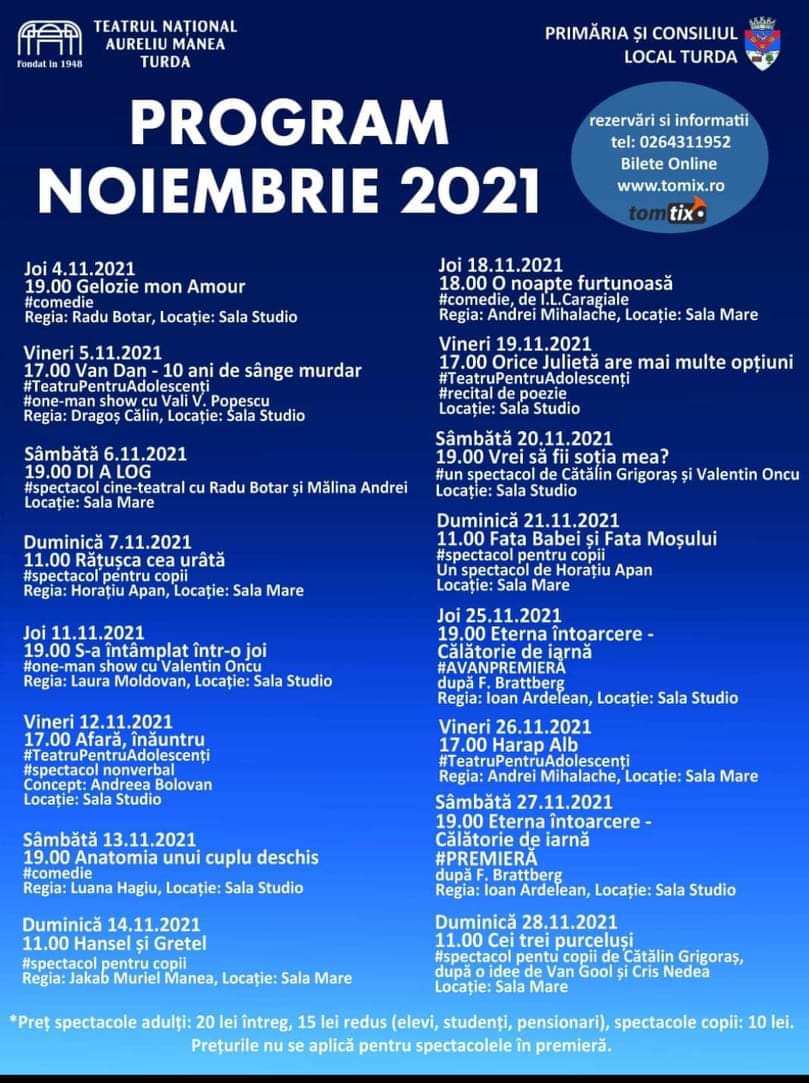Actualitate Programul lunii noiembrie la Teatrul Național Aureliu Manea Turda ziarul21.ro 1 noiembrie 2021, 09:52 Share Tweet Share Share Email Comments Bilete online ➡ https://www.tomtix.ro/evenimente-teatrul-national-aureliu-manea-turda-62. Rezervări la tel. 0264 311 952. Vă așteptăm la teatru! Related Items:Featured, Programul lunii noiembrie la Teatrul Național Aureliu Manea Turda, turda, ziarul 21 Share Tweet Share Share Email Recommended for you Noii polițiști ai IPJ Cluj, instruiți în comunicarea cu cetățenii: profesionalismul începe cu dialogul BĂRBAT URMĂRIT NAȚIONAL DEPISTAT DE POLIȚIȘTI ÎN CLUJ Se începe sterilizarea și microciparea câinilor din comuna Mihai Viteazu Click to comment Leave a Reply Anulează răspunsulComentariile trebuie să respecte regulile de utilizare.Adresa ta de email nu va fi publicată. Câmpurile necesare sunt marcate cu *Comentariu * Nume * Email * Δ Acest site folosește Akismet pentru a reduce spamul. Află cum sunt procesate datele comentariilor tale.