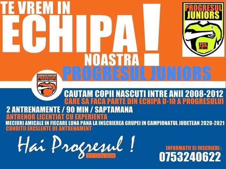 Cautam copii născuți între anii 2008 și 2012, care să completeze echipa de juniori U-10 a Progresului.
