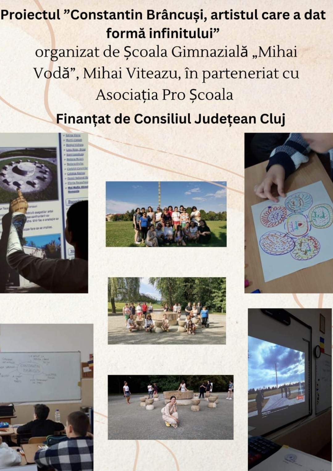 Școala Gimnazială „Mihai Vodă” împreună cu Asociația PRO SCOALA au derulat în acest an un proiect educativ, înscris în ciclul de proiecte MARI ROMÂNI. Proiectul, finanțat de Consiliul Județean Cluj din fonduri nerambursabile 2022, cu suma de 6000 de lei, a avut în centrul atenției personalitatea marelui sculptor, Constantin Brâncuși. Proiectul cu titlul ”Constantin Brâncuși, artistul care a dat formă infinitului”, s-a derulat începând cu luna iunie 2022 și s-a finalizat în luna decembrie. Activitățile proiectului au fost diverse și au implicat elevi, profesori și părinți. Iată câteva dintre temele prezente în proiect: